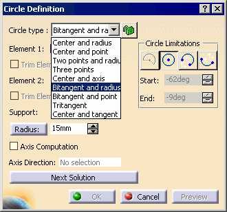 1. Select Insert | Wireframe | Circle. The Circle Definition dialog.